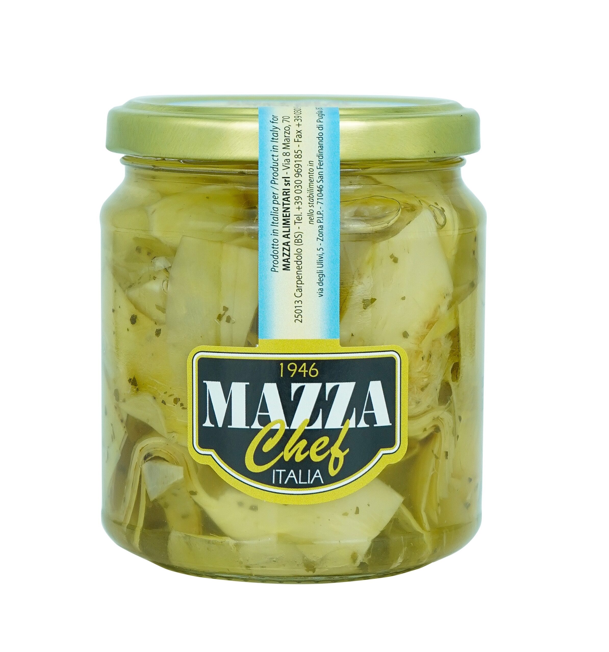Ingredients: Artichokes (57%), Sunflower oil, Spices, Water, Wine vinegar, Salt, Acidity corrector: citric acid (E330), Antioxidant: L-ascorbic acid (E300).